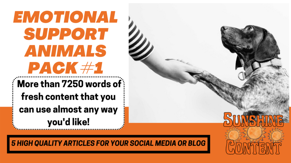 Here is what is included in your over 7,250 words of fresh emotional support animal related content that you can use almost any way you like!